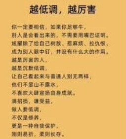 越招摇的人,越容易翻车。低调的人暗中积累,高调的人炫耀一时,摔得最惨。