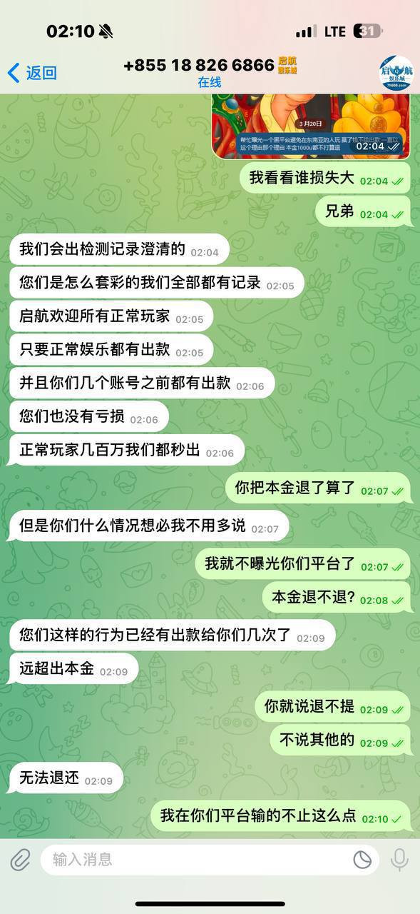 东南亚打拼的兄弟们,真心提醒一句:赶紧把启航娱乐城拉进黑名单,这破平台黑得明明白白,专吃赢钱玩家的黑钱。